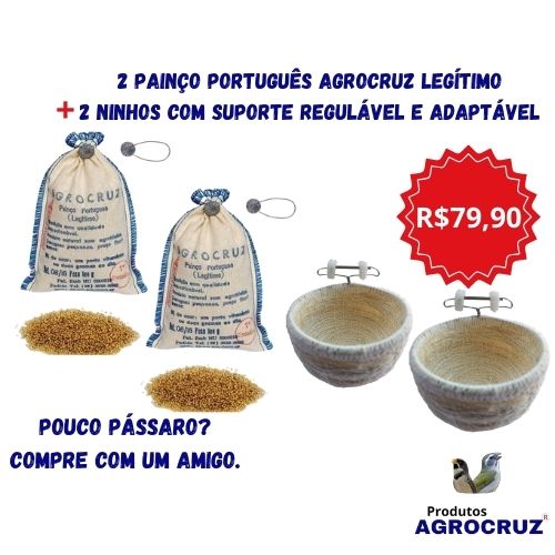 Nos outros paises, onde o painço português é usado somente como alimentação, fez-se uma seleção com o objetivo de aumentar a produtividade, porém isso o deixou mais fraco, exigindo uma dosagem maior. As conseqüências são a engorda do pássaro e o ressecamento das fezes. No Brasil, através da AGROCRUZ®, o Painço Português foi mantido no estado original, com toda sua força. Deve, por isso, ser usado em pequenas doses,( 1 GRAMA 3 VEZES NA SEMANA). Isso evita a engorda, ressecamento das fezes e tem um custo final mais baixo.