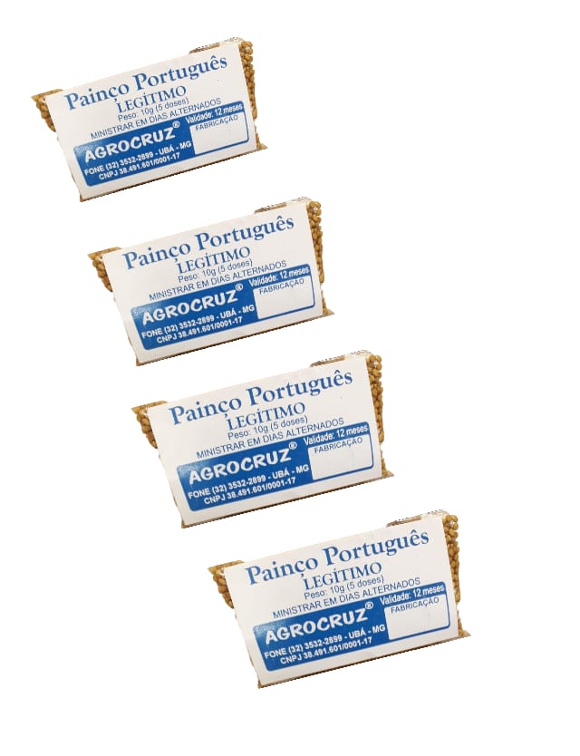 Nos outros paises, onde o painço português é usado somente como alimentação, fez-se uma seleção com o objetivo de aumentar a produtividade, porém isso o deixou mais fraco, exigindo uma dosagem maior. As conseqüências são a engorda do pássaro e o ressecamento das fezes. No Brasil, através da AGROCRUZ®, o Painço Português foi mantido no estado original, com toda sua força. Deve, por isso, ser usado em pequenas doses,(